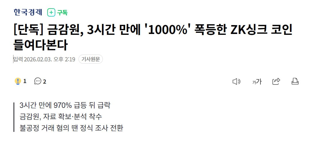 On the 3rd, the Financial Supervisory Service’s Virtual Asset Investigation Department said in a call with Bloomingbit that ‘it is aware that ZKsync recorded a roughly 1000% price swing within a short period,’ and that ‘it is currently securing related data and verifying the details.’ It added that ‘depending on the assessed seriousness of the matter, it may swiftly transition to a formal investigation.’