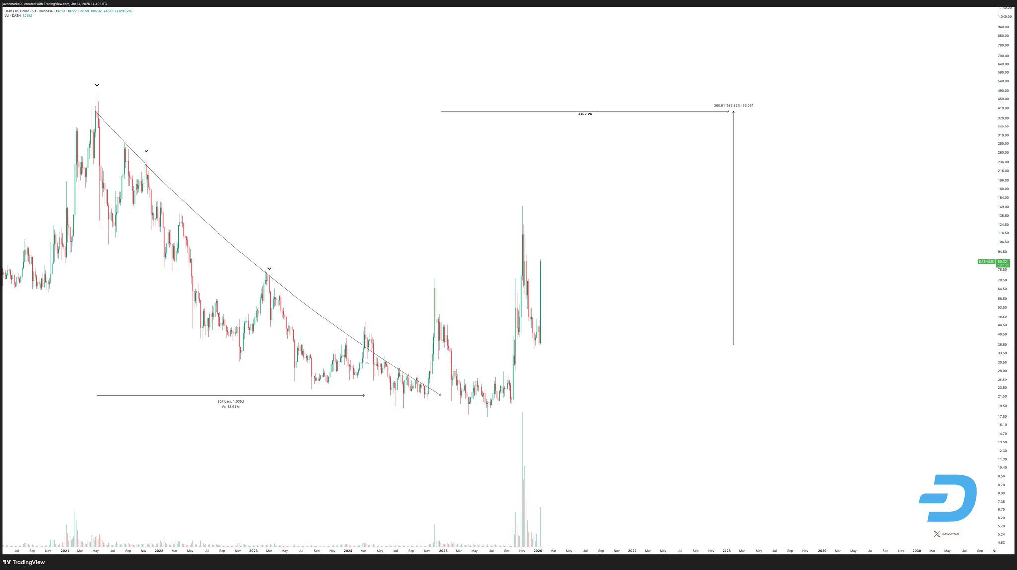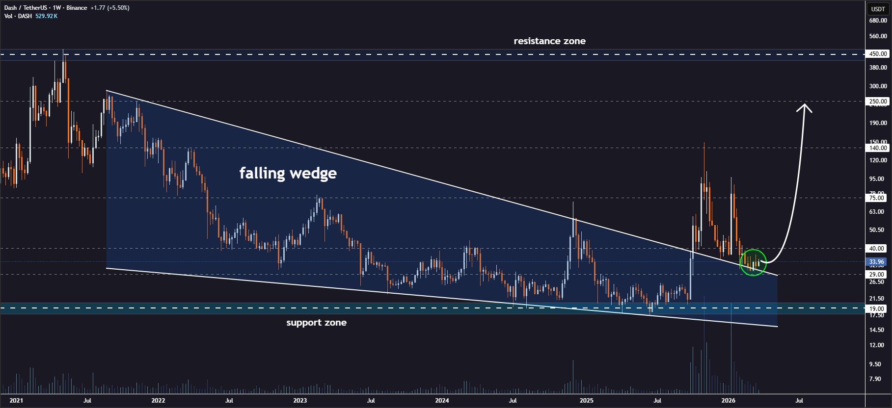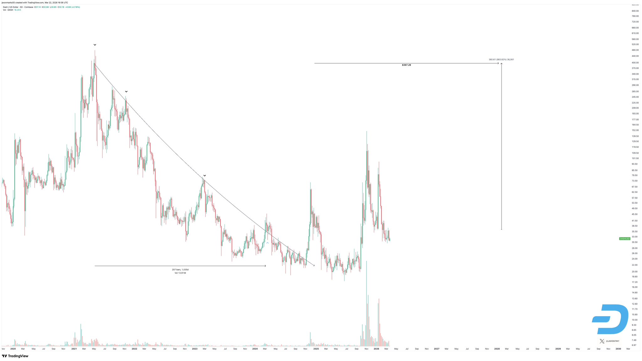 Dash D445.13K @Dashpay5 2 188 Оригінал >Тенденція DASH після випускуБичачий