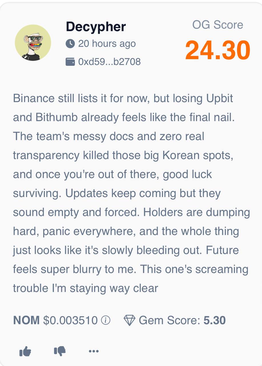 𝒫𝓊𝒻𝒾 TA_Analyst Trader C6.46K @kriptopufi0 0 0 Оригінал >Тенденція NOM після випускуНадзвичайно ведмежий