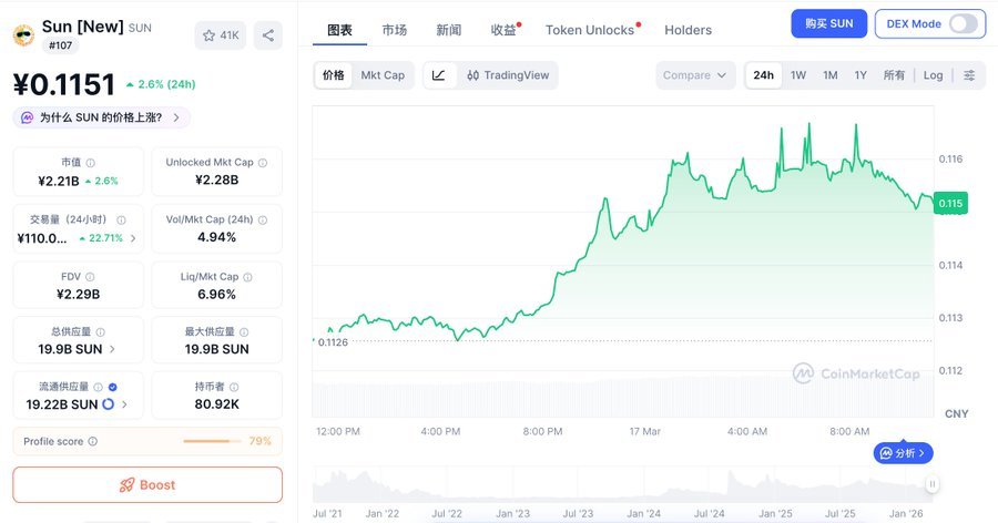 7 7 7.33K Оригінал >Тенденція SUN після випускуНадзвичайно бичачийSUN token shows strong performance in the TRON DeFi ecosystem, with significant growth in price and trading volume.