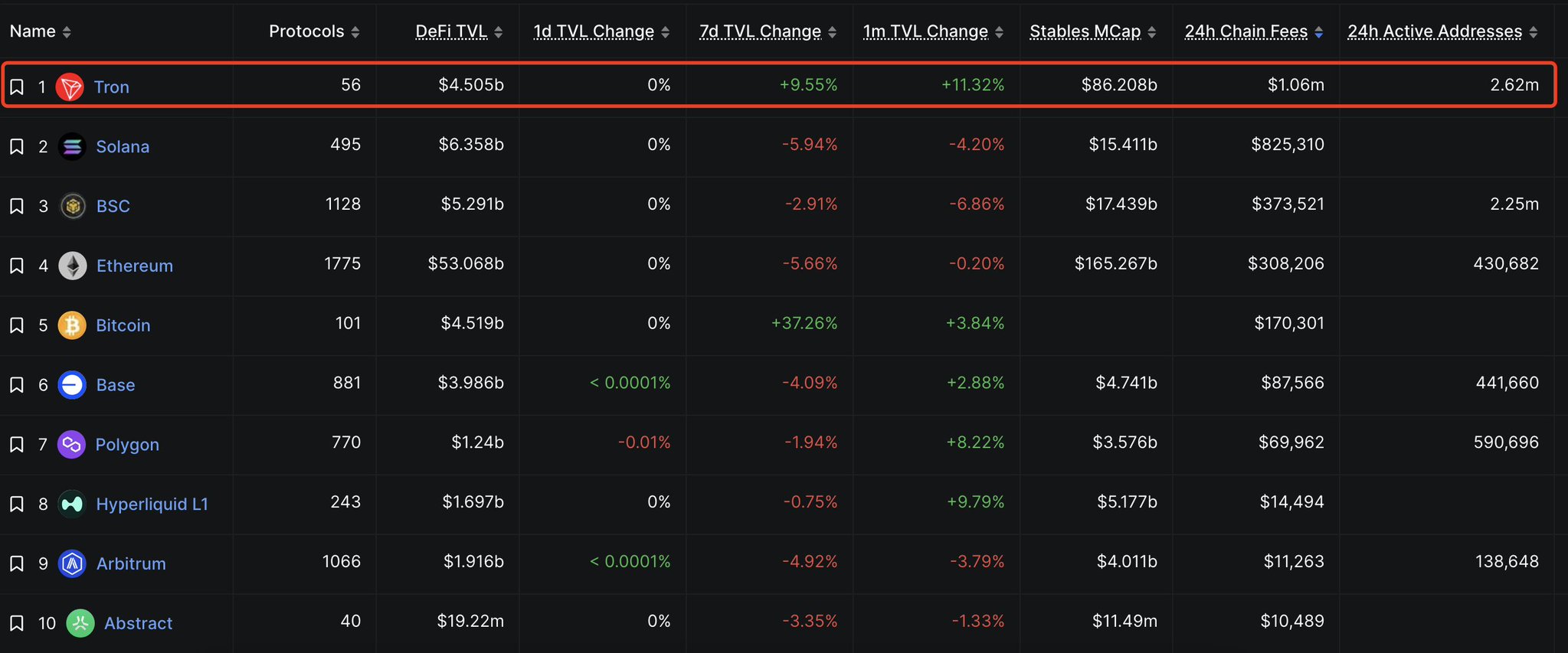 ShowMaker Community_Lead Influencer A32.16K @0xshowmakerWhile the market is pulling, @trondao network's TVL has increased by 11.32% compared to last month. Additionally, with 2.62M active users, it ranks as the most actively used chain in the last 24 hours and has earned $1.06M in fees in a day. I don’t know if a bull market will come, but during uptrends the safest and cleanest rises are shown by the old major coins. @justinsuntron continues to develop the ecosystem regardless of the bull month. While everyone chases platform revenue, money‑making and value‑creating projects, the massive $TRX is doing a great job. It is already the leading chain in the stablecoin space. We are watching it with interest. #TRON @TronDao_Turkish #TRONGlobalFriends #TRONEcoStar