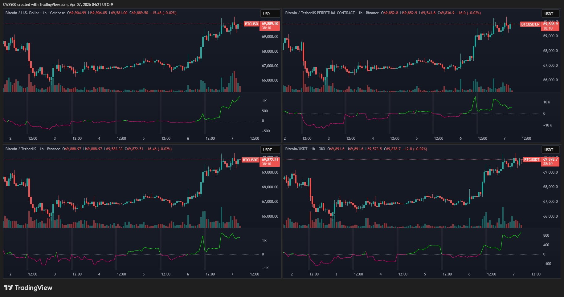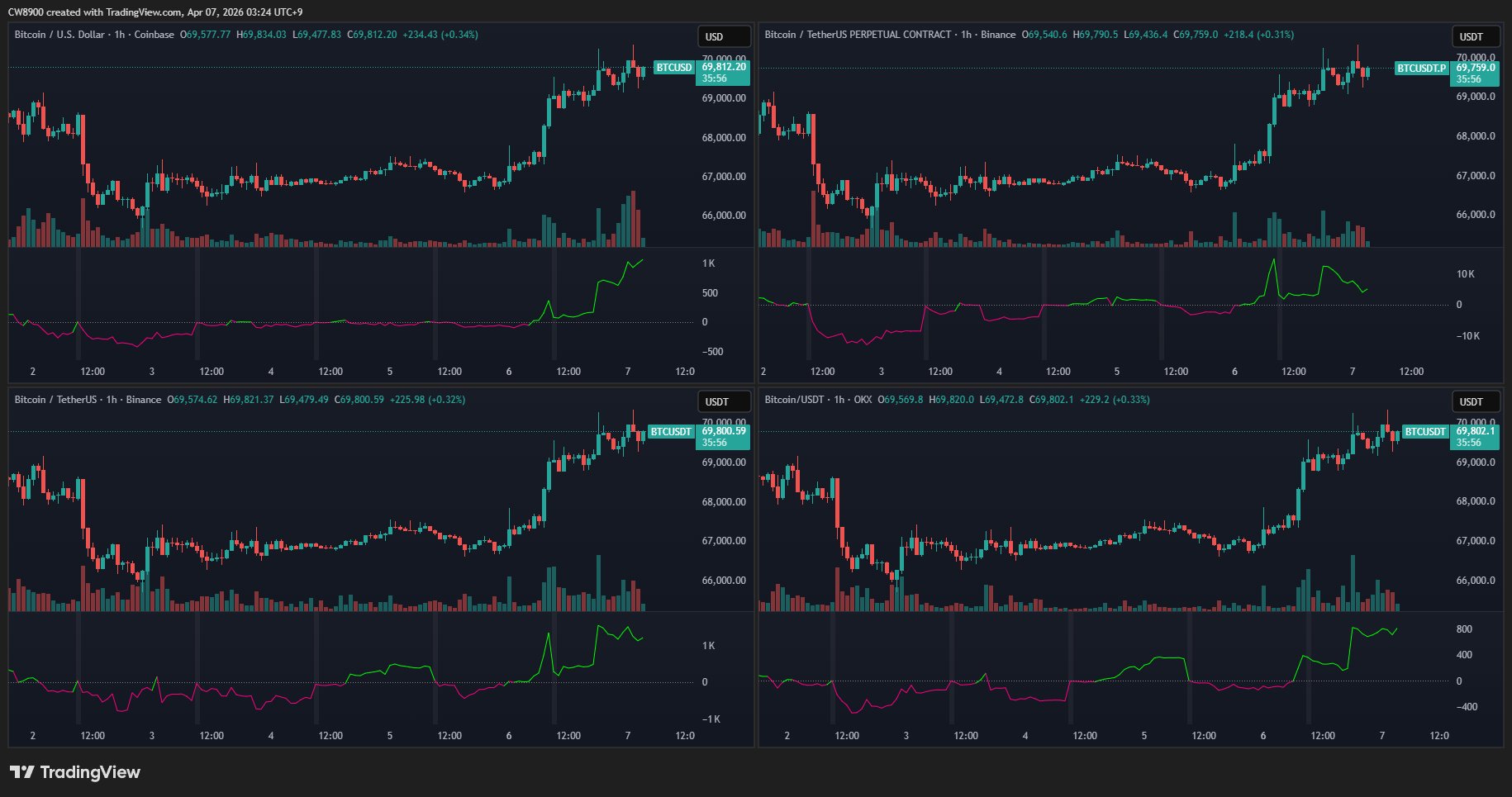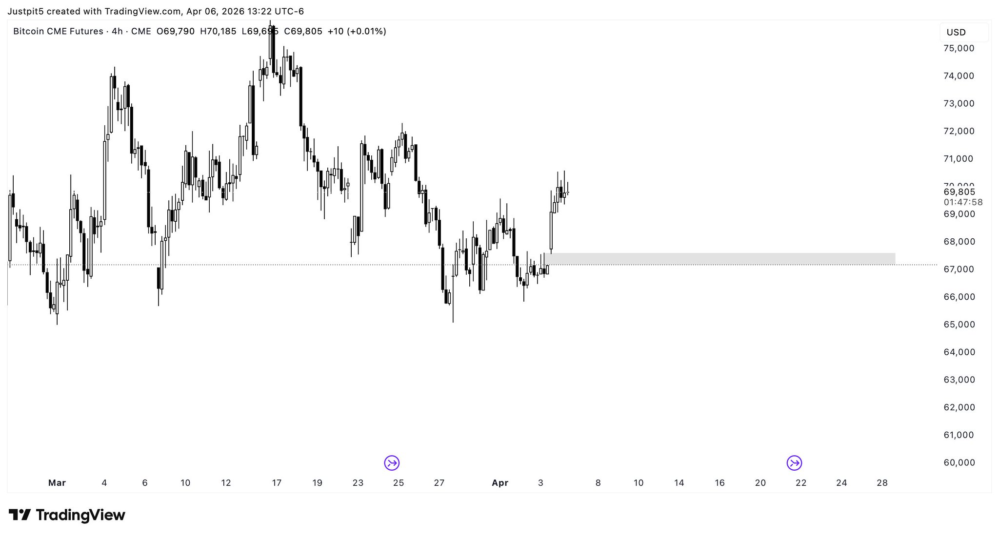 $ 67,351.32 24-годинний діапазон $ 70,349.10