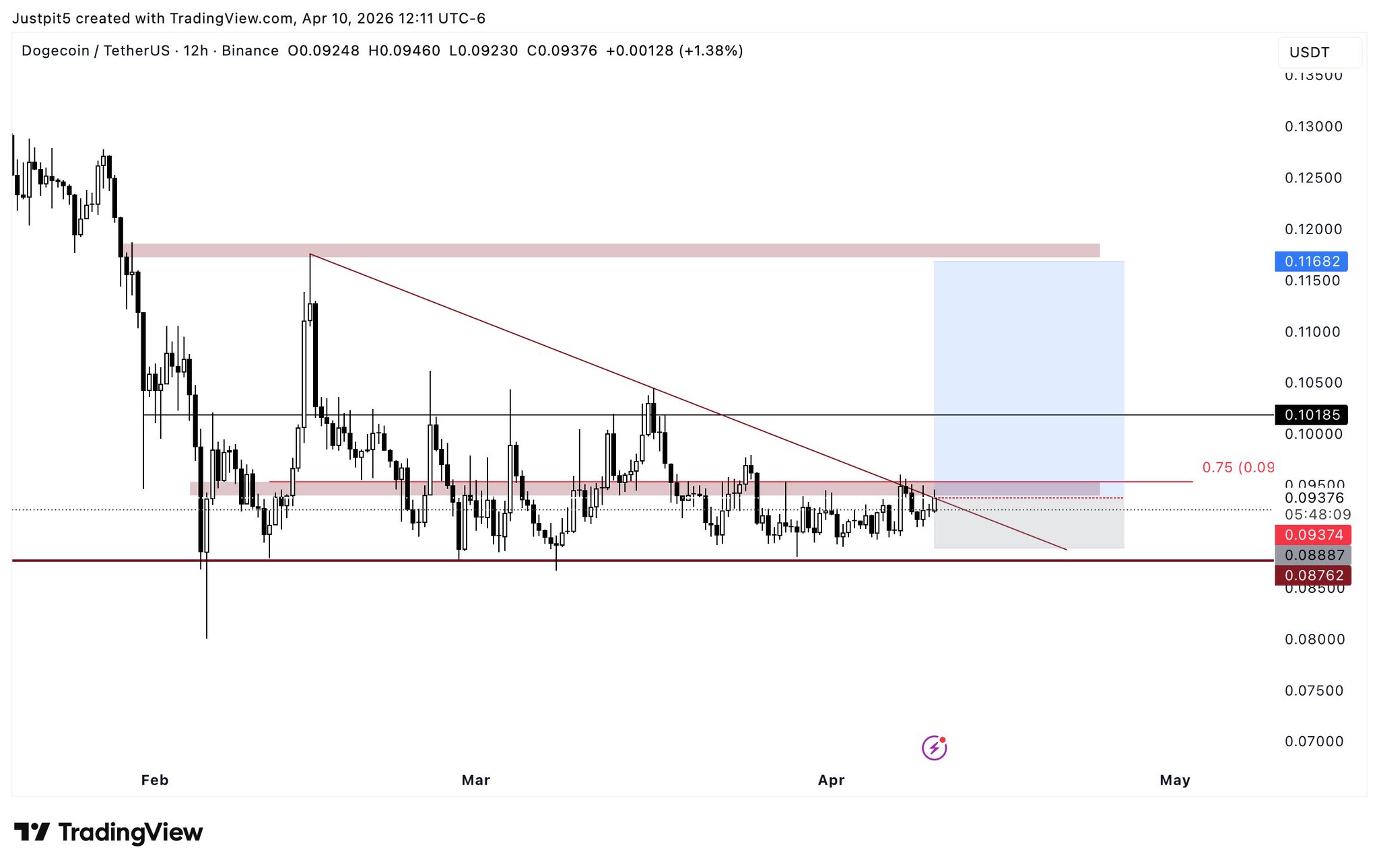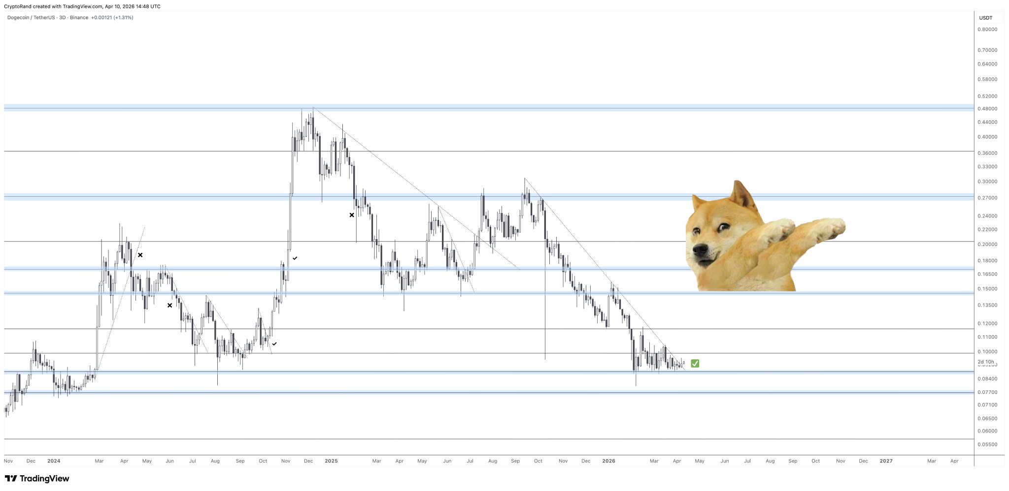 DOGE breaching the main downtrend resistance for the first time in a year, indicating potential upside.
