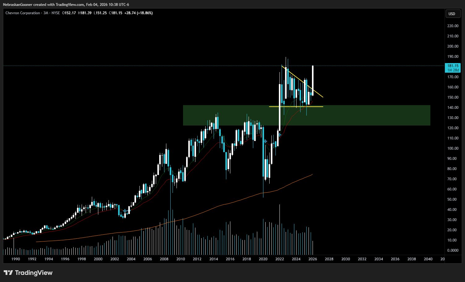 CVX shows a solid bullish structure and breaks out of consolidation, likely entering a new price discovery phase.