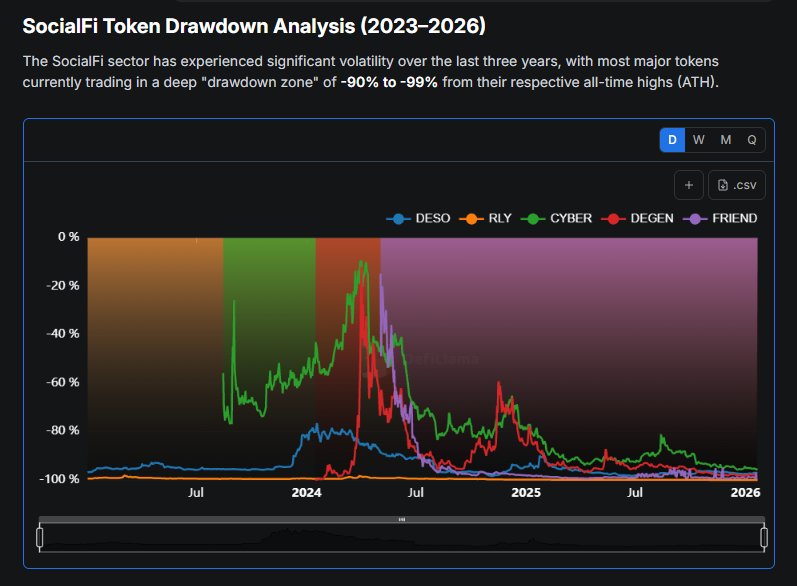 SocialFi tokens generally face deep drawdowns of 90-99%, outlook is concerning.