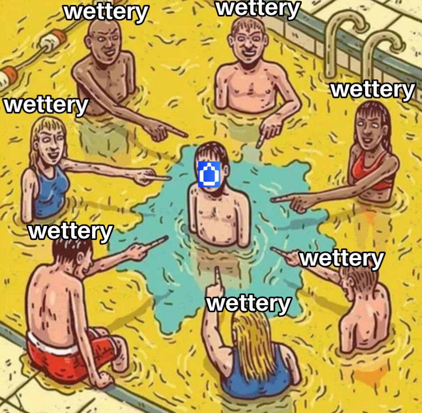 The tweet uses a meme to express the author's humorous feeling of being noticed or 'wet' as a @humidifi_ member in the Discord meme channel, unrelated to trading.