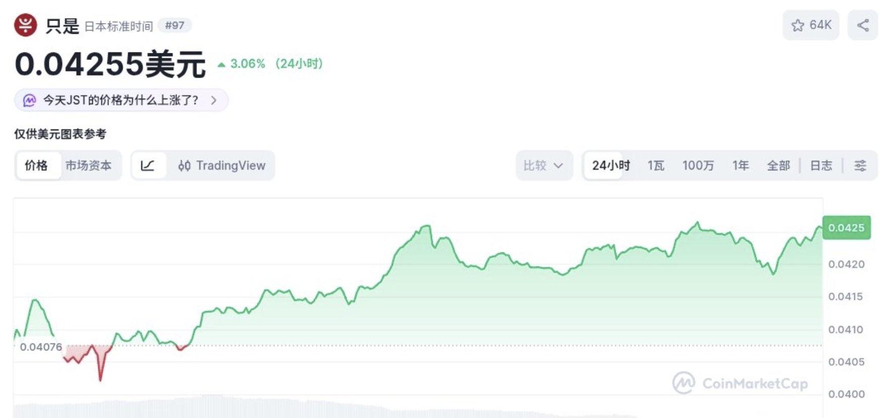 $JST price is $0.04223, up +4.98% in 24 hours.