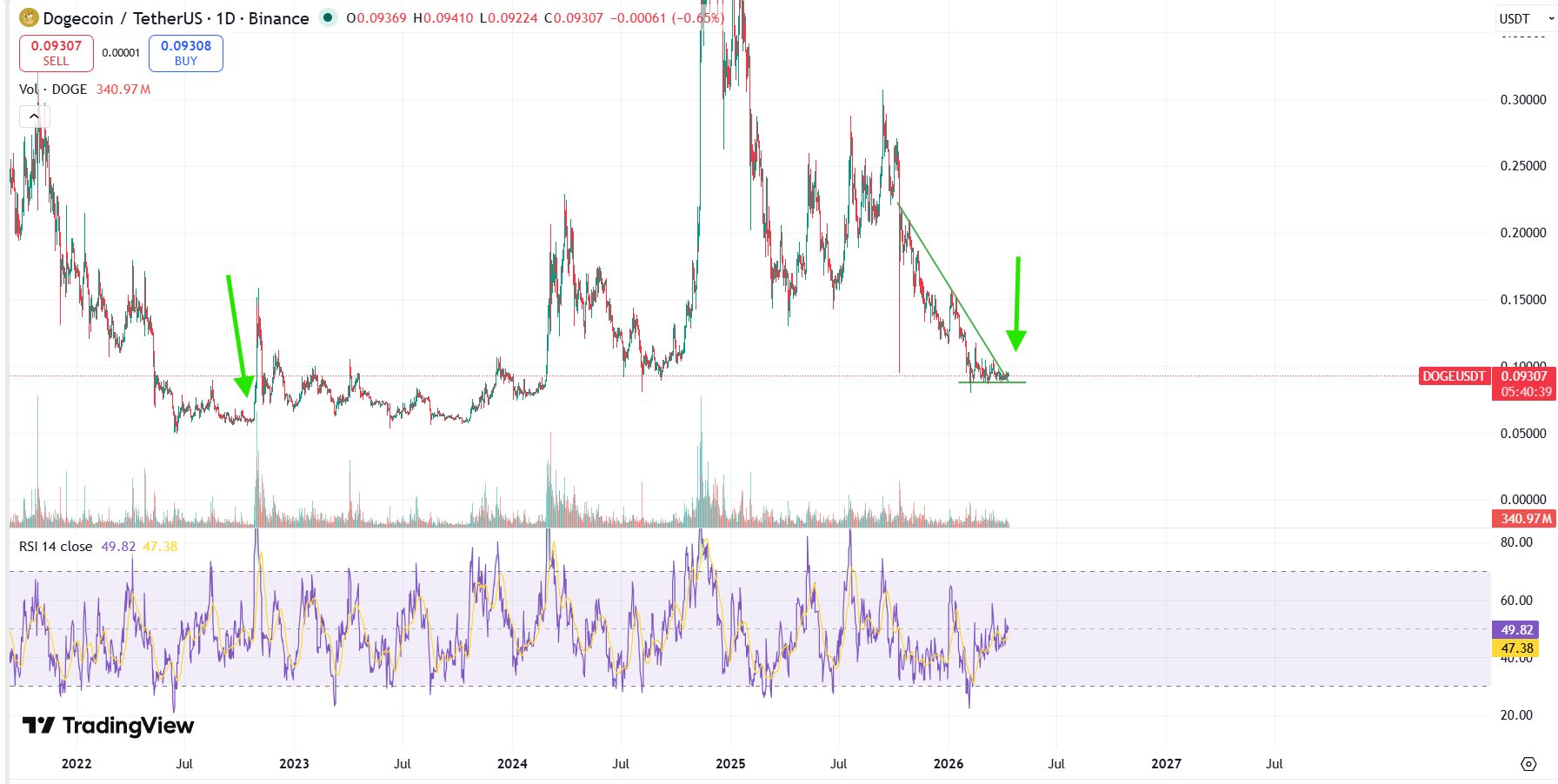 This Chart Predicts One Day $DOGE Could Hit $2 And This Is All A Patience Game...\n\nHistory Doesn't Repeat, But It Rhymes. Same Fractal. Same Accumulation. Same Disbelief.\n\nBest Accumulation Zone: $0.09-$0.07\nTarget: $0.5 / $1 / $2\nStop Loss: HTF Close Below $0.048\n\nNot Financial Advice. ALWAYS DYOR. \n\n@dogecoin