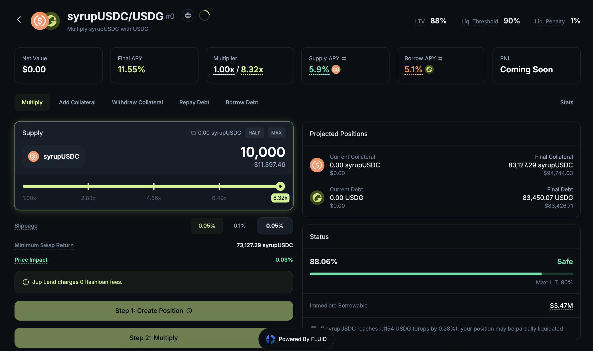 For those who earn with @maplefinance syrupUSDC, there's a Multiply 8.3x loop on @jup_lend for syrupUSDC/USDG earning 11.55%.