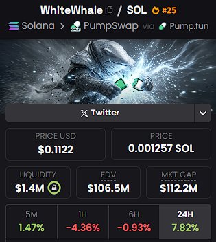 UPDATE: $WHITEWHALE | @WhiteWhaleMeme has broken past the $100 million mark and is now sitting at $112 million after pumping over 7% in the past day. https://t.co/PkSAiOVMGo
