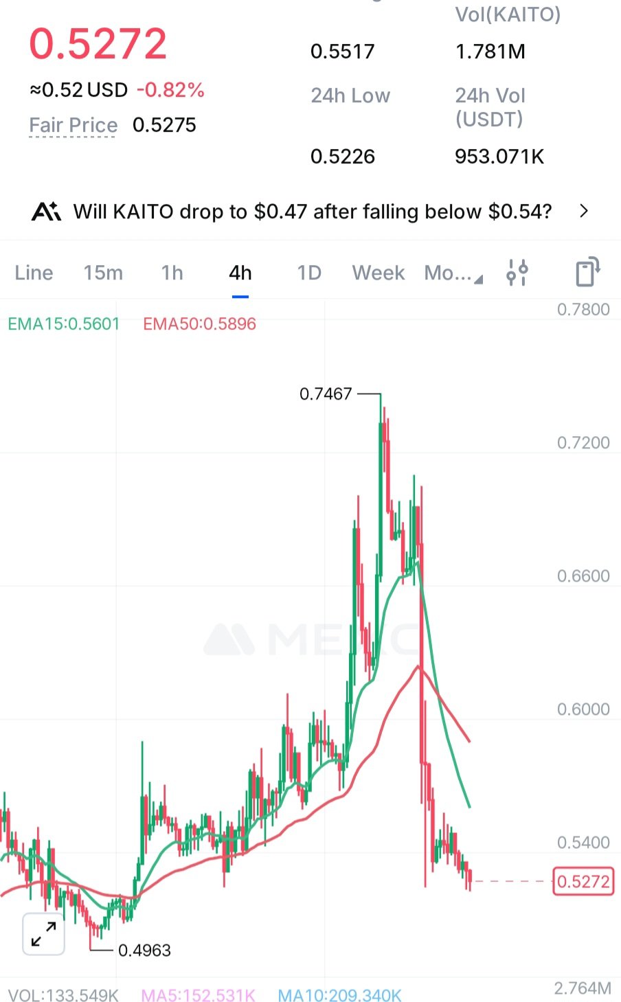 82 10 8.89K 阅读原文 >发布后KAITO走势看跌