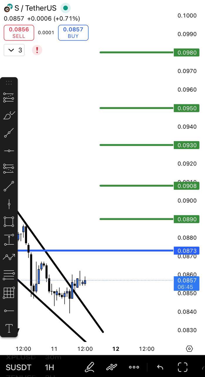 $S #S 📍在1小时图上有积极迹象,但需要确认收盘价高于0.0873$。 如果突破,将飞向图表上的绿色目标。 愿上帝保佑你 💞 https://t.co/f429m6eMfE