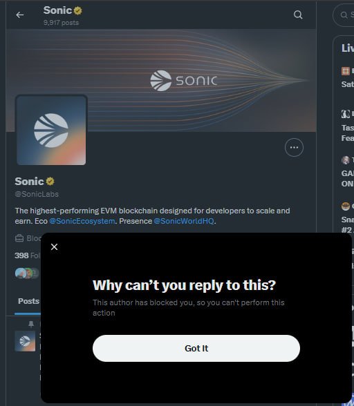 Sonic Team new marketing approach which is blocking investors is running builders off the network @SonicLabs $S facts or fud ? https://t.co/igkHlQ1T7E
