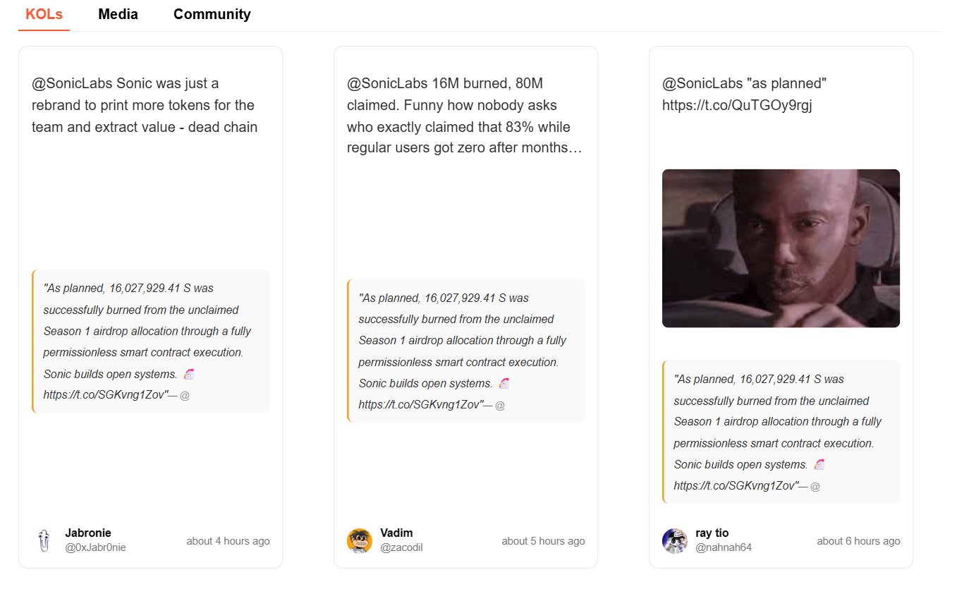 这里是他们在 @SonicLabs 上封锁了 Defi Warlords 以及大量 OG,$S .. 真的无语,封锁策略导致 Sonic 大规模抛售。 https://t.co/Qb6D3XsKE9