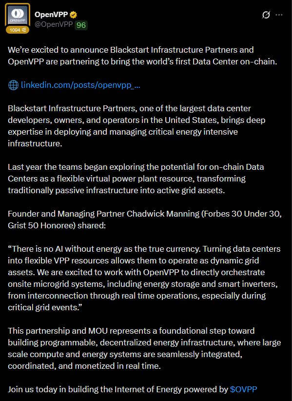 📡 @OpenVPP + Blackstart 将全球首个链上数据中心代币化