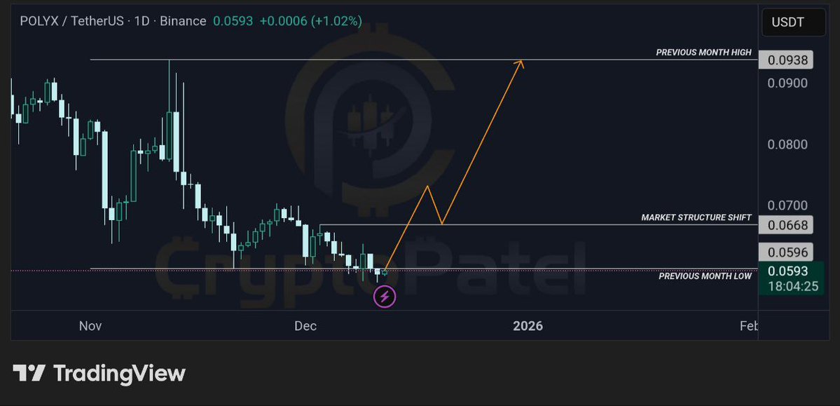 POLYX技术分析显示看涨,预计从当前低点反转,目标价0.0938美元。