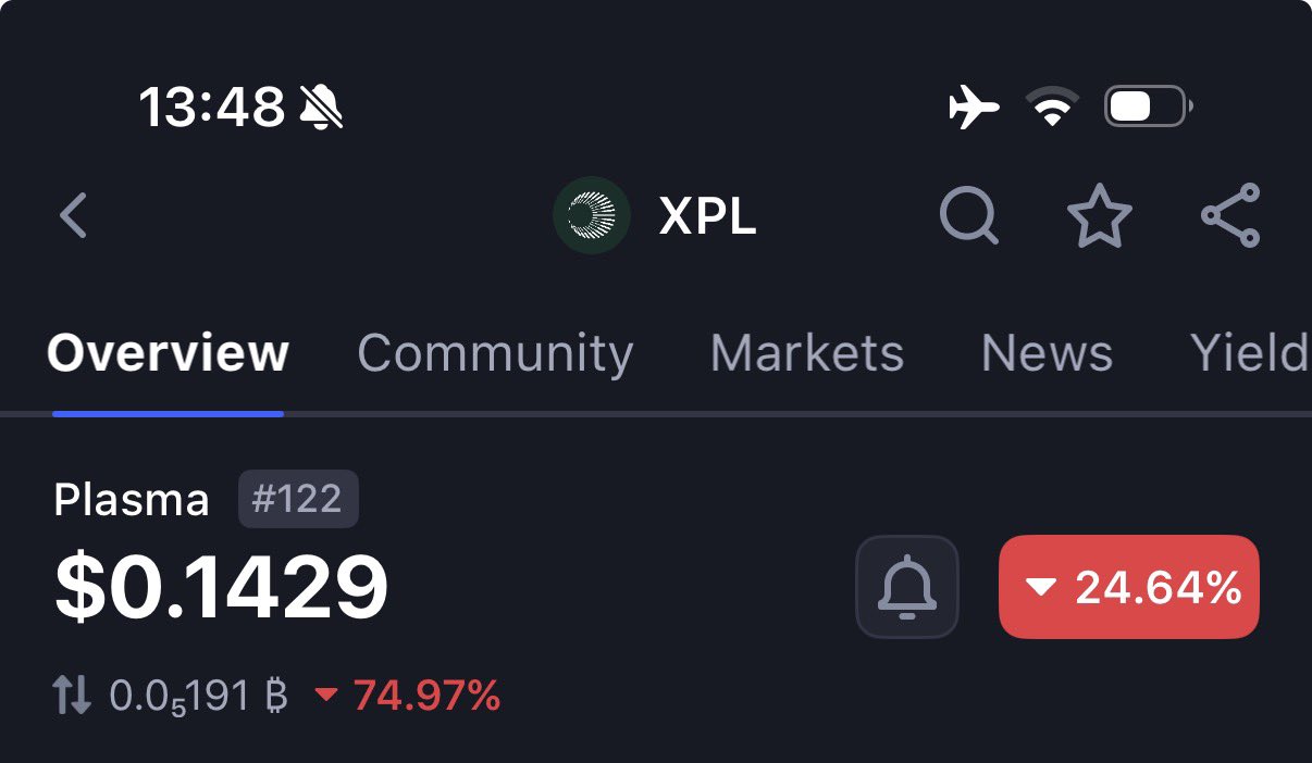 如果你在2025年9月27日投资了$1k购买$XPL,那么它今天只值$83,
