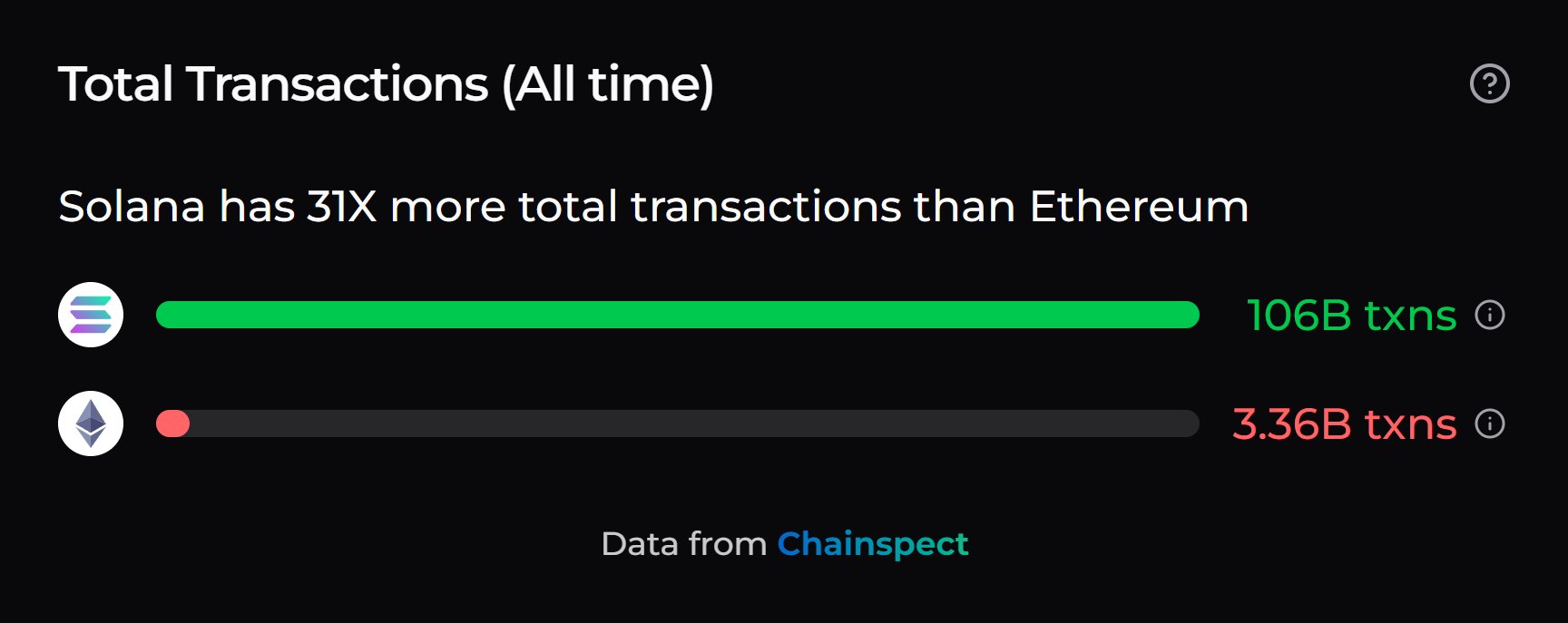 Solana总交易量是以太坊的31倍,显示其卓越链上活动。