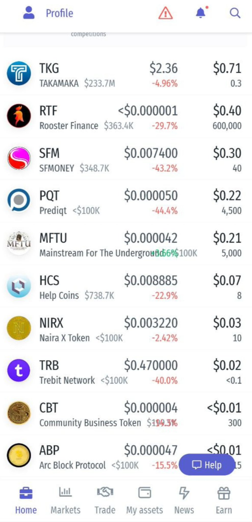 推文回忆Latoken空投曾易获利,配图则显示小型山寨币普遍下跌。