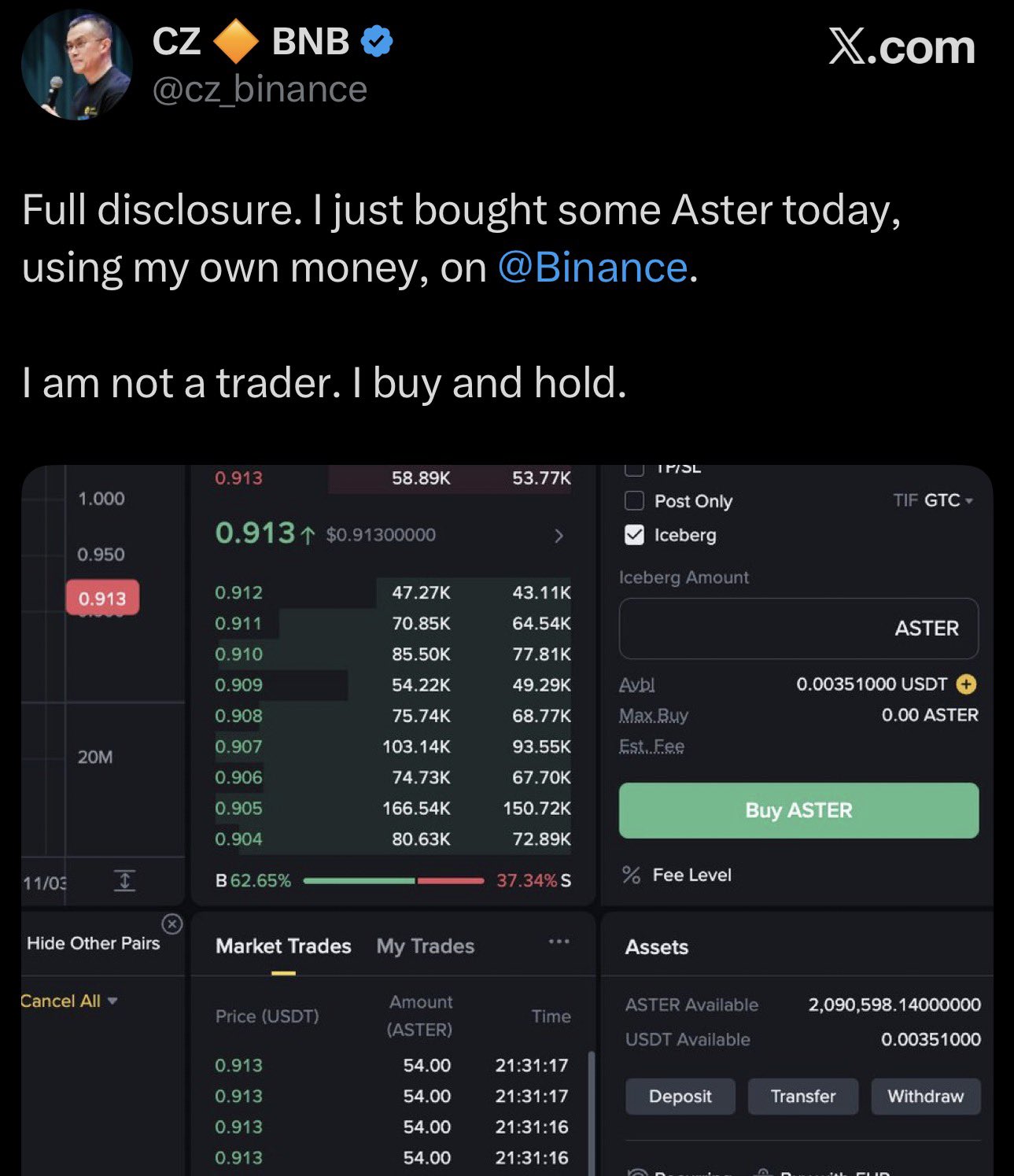 - 釋出後ASTER走勢看漲