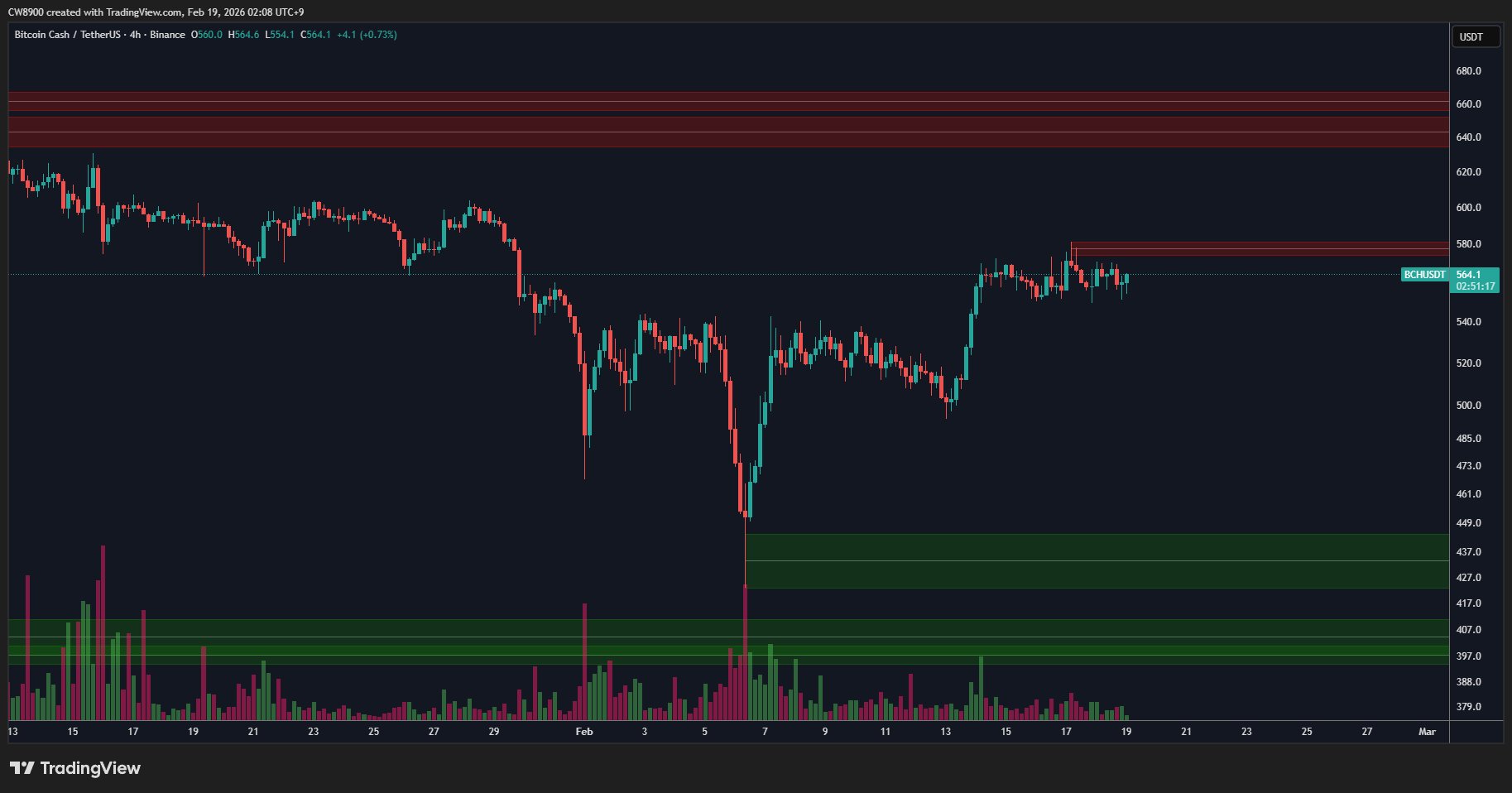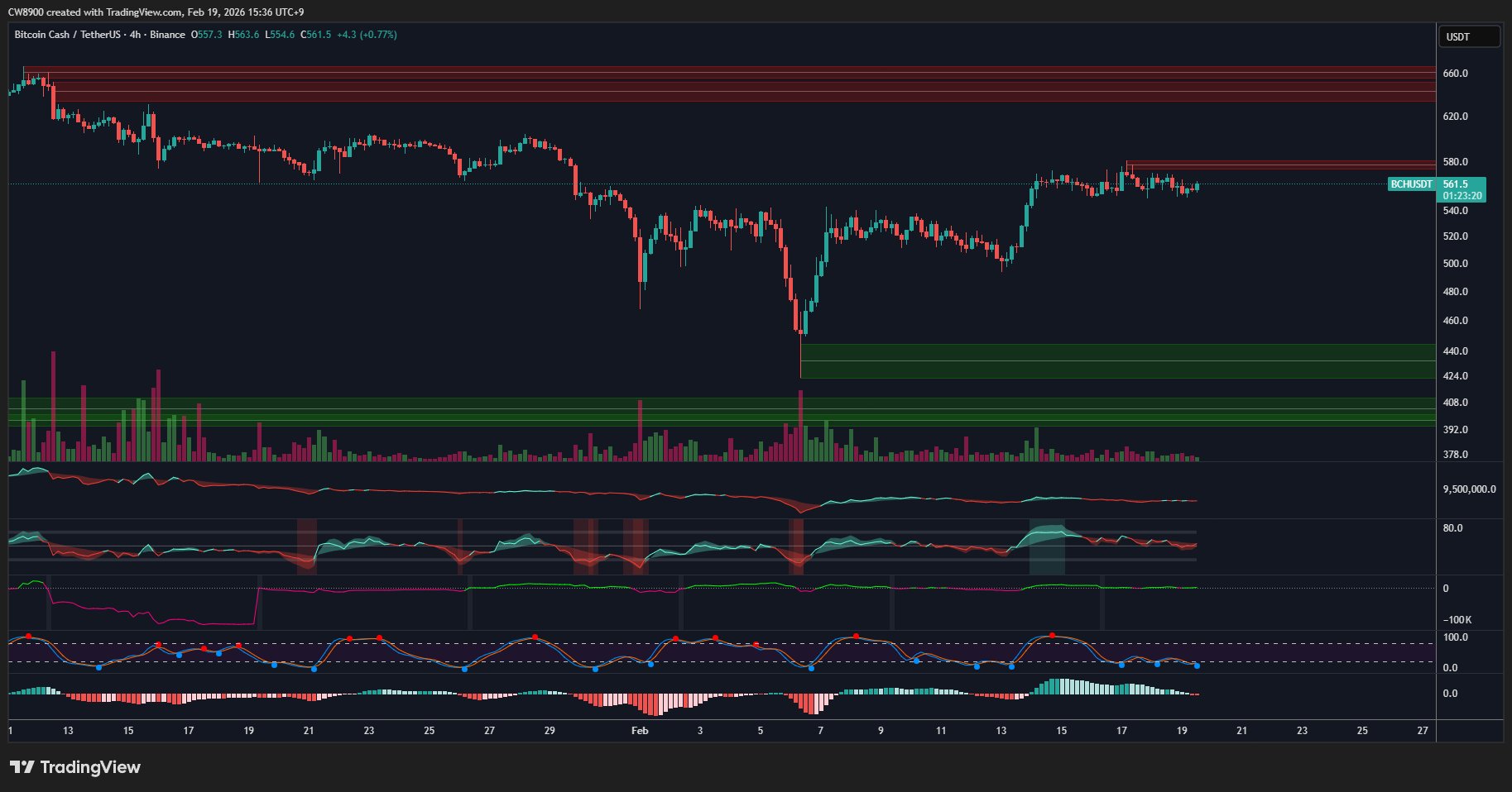 - 概要BCH is oscillating around the $560 range, price slightly retreating, social heat rising, some KOLs note record-high volume and weakened sell wall.