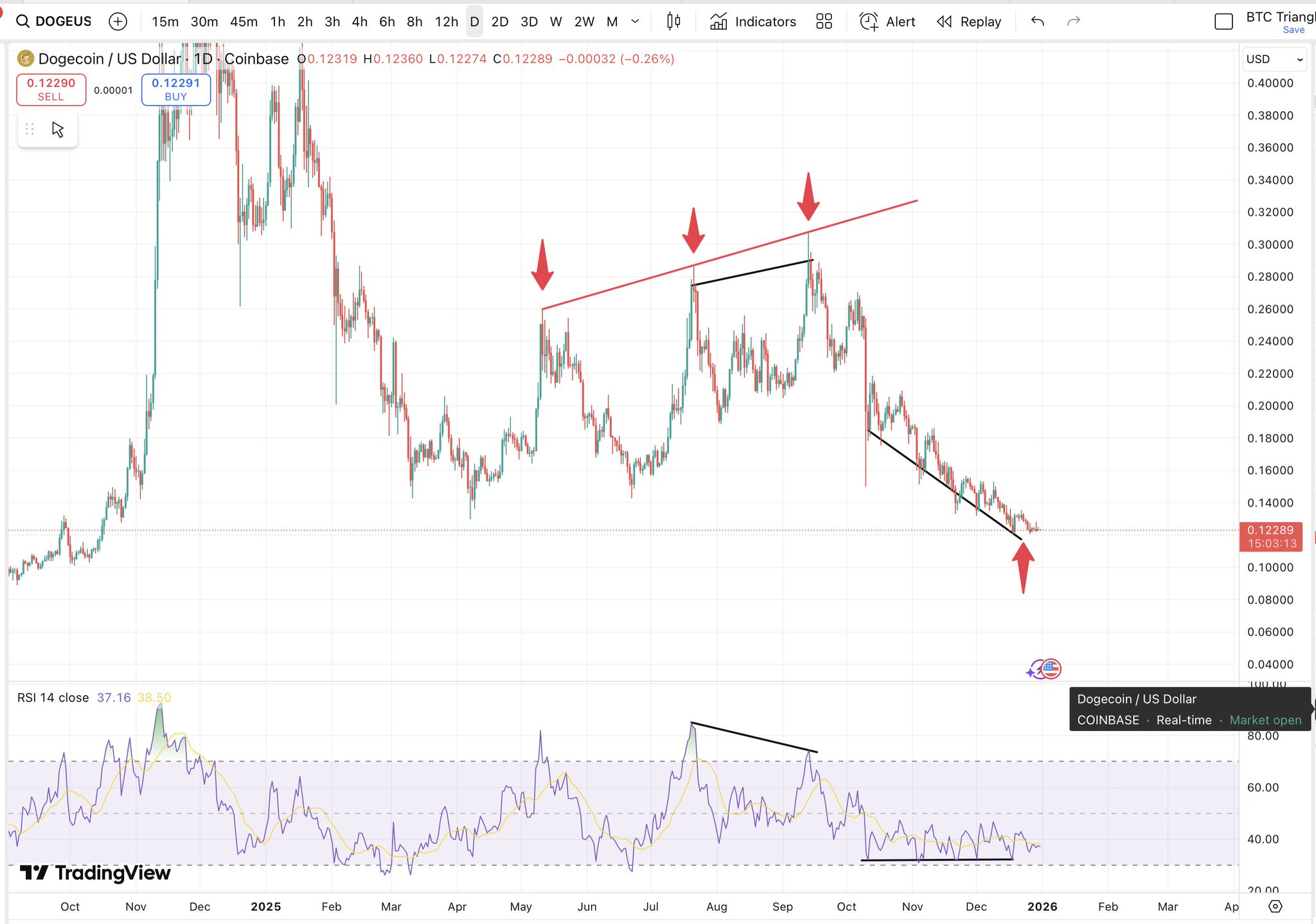 - 釋出後DOGE走勢看跌