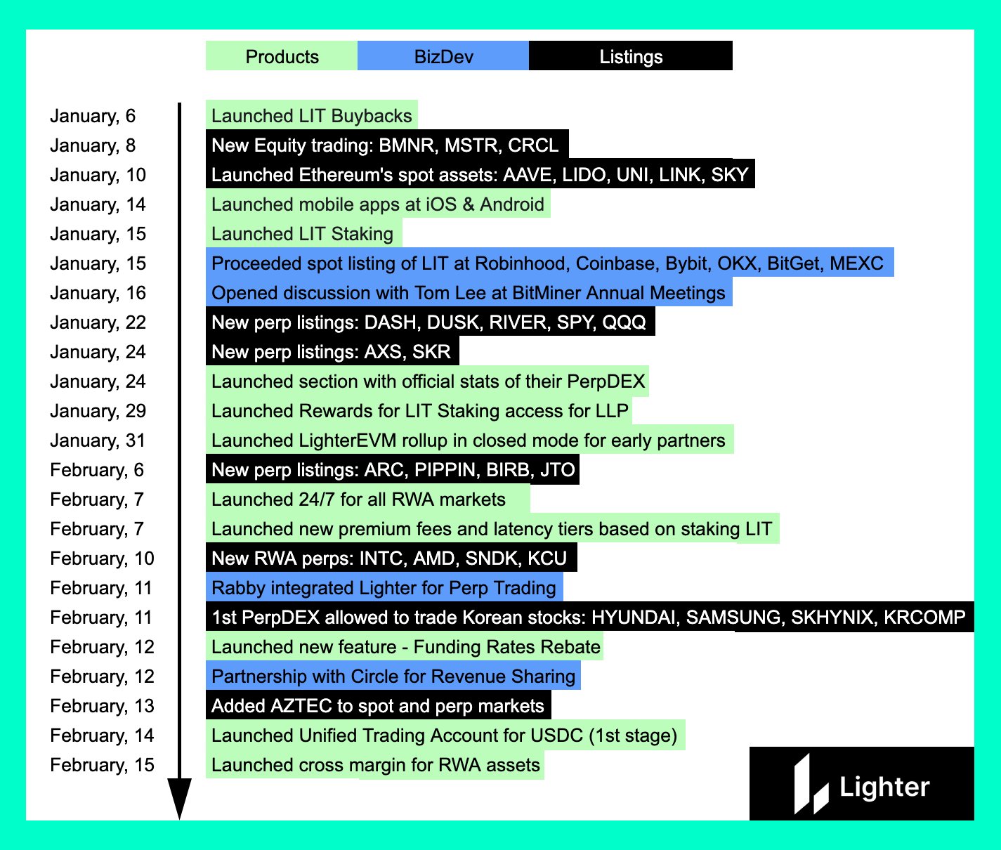 Eugene Bulltime.🕯️ D4.48K @Eugene_BulltimeLighter's team is one of the most productive in the market. In the 6 weeks since the TGE, they've added 11 new products, not including listings Product delivery speed is exceptional Products are innovative Value is real and based on feedback Matter of time when LIT catches up with the product