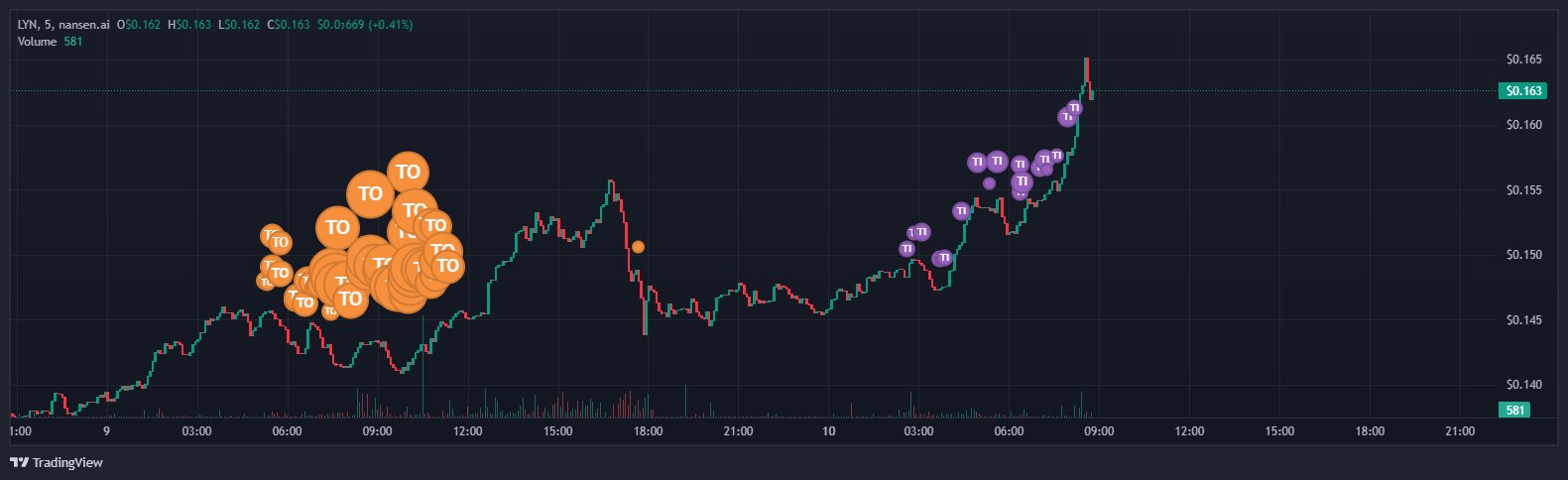 5 1 1.18K 閱讀原文 >釋出後LYN走勢極度看漲Whale wallets have bought LYN again in large amounts, indicating potential upside and already achieving a 60% rise.