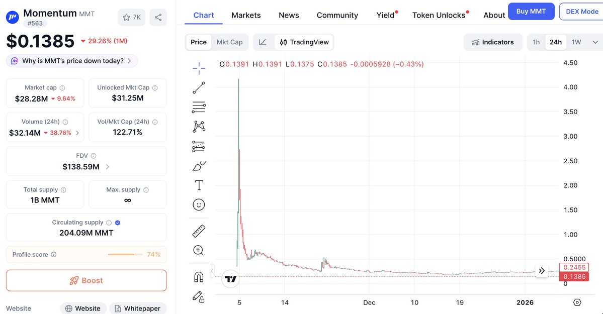 greb Influencer Tokenomics_Expert C57.57K @grebbycrypto192 106 12.82K 閱讀原文 >釋出後MMT走勢看跌