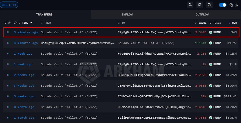 onchainschool.pro OnChain_Analyst Educator B6.45K @how2onchain$PUMP : DUMP AND FURTHER DUMP ON THE EXCHANGE The team transferred $4M in tokens to another wallet of theirs, from which further transfers to the exchange are visible in the history. In total, $27M worth of tokens have already been withdrawn from this wallet. https://t.co/Mrr1ntu8W7