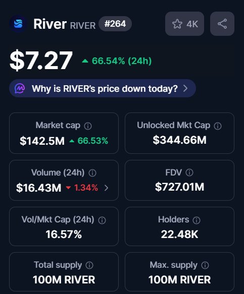 - 釋出後RIVER走勢極度看漲