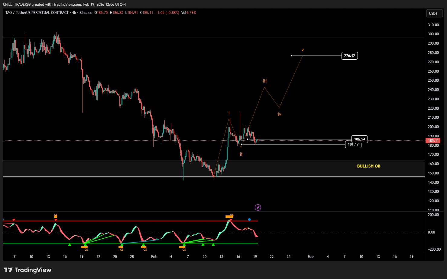 Chill Trader TA_Analyst Trader C7.47K @Chill_trader99$TAO just bounced from the bullish order block — possible weekly triple bottom forming. 📈 Targets if BTC holds $66K: $223 → $296. If BTC drops, TAO could wick to $140–$130. 4H wave setup: Wave 2 now → Wave 3 ~$142 → Wave 5 ~$227. https://t.co/Y0tOAJPvZ4