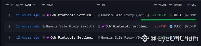 EyeOnChain OnChain_Analyst Trader C5.51K @EyeOnChainDidn’t ease in at all --it just showed up & went straight to $WLFI 🥳 New wallet, 0xC581, around 11 hours ago dropped $2.749M USDC in one clean move to grab up 21.106 million #WLFI . The wallet is here if you’re watching it:👇 0xC58108f4f60667277ab13583e9b365dFAD810E6C https://t.co/VHPhNihwJN