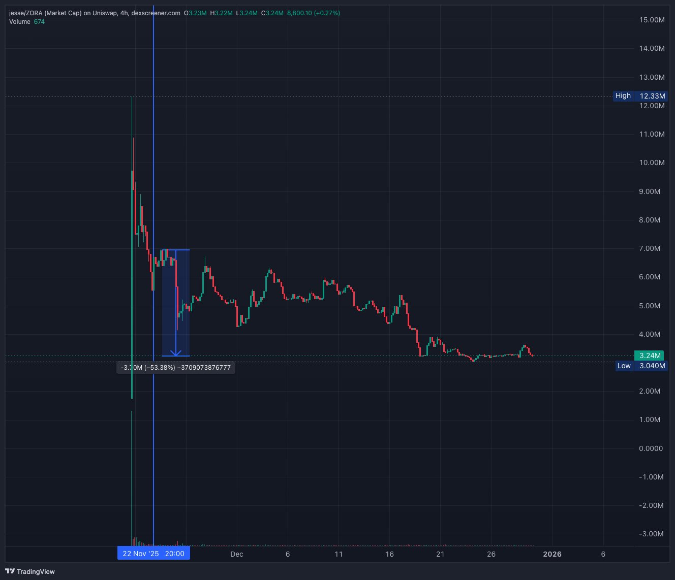 - 釋出後ZORA走勢極度看跌